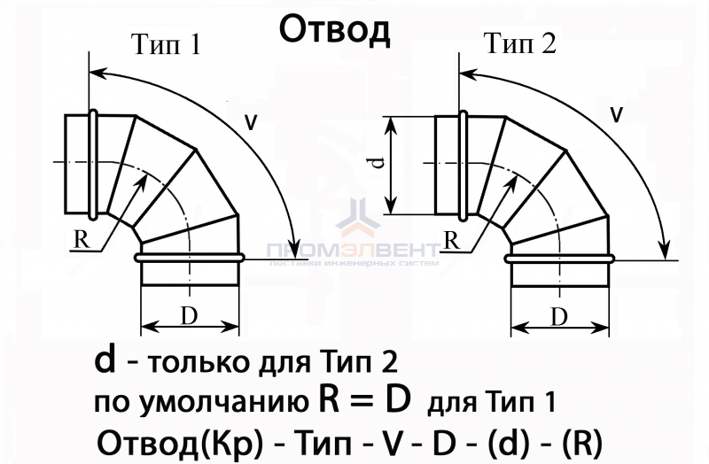 Отводы изготавливаются в двух исполнениях Тип 1, Тип 2.